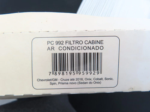 FILTRO AR CONDICIONADO CABINE CRUZE ATE 2016 ONIX COBALT PC992 PARALELO